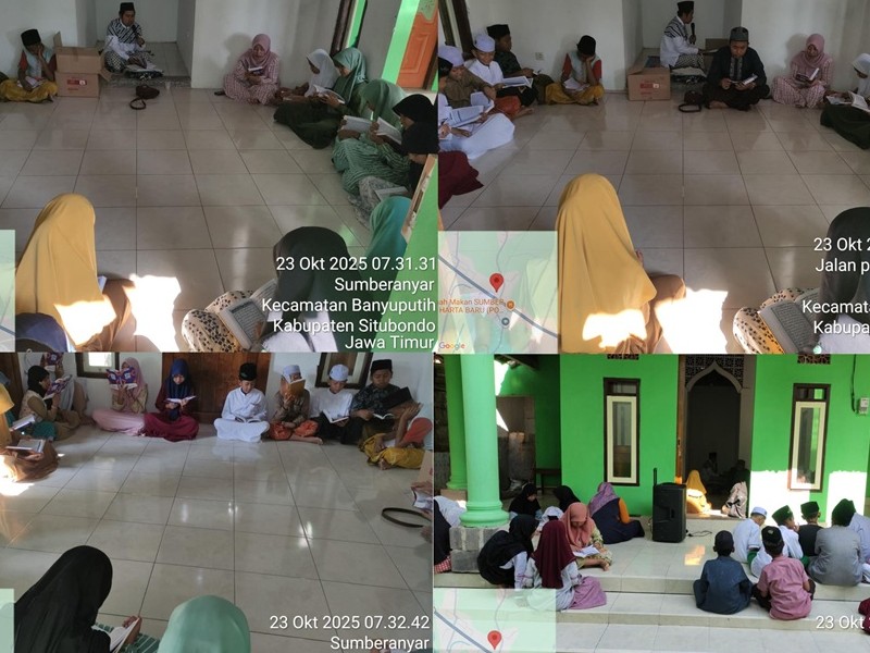Pelaksanaan Kegiatan Khotmil Qur'an dalam Rangka Memperingati Hari Santri Nasional 2025 yang di laksanakan oleh Guru dan Murid-murid SD negeri 6 Sumberanyar.